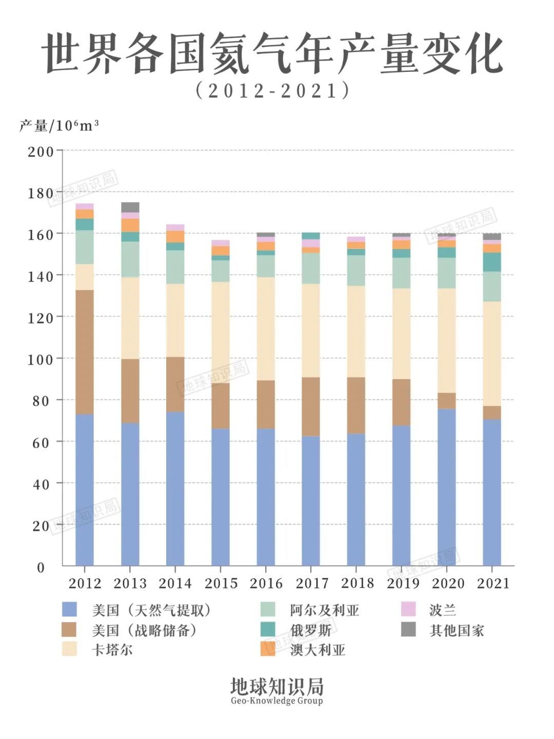 由于氦气的用途主要在半导体制造、核磁共振、航空航天。世界上的用氦大国,都是玩儿得起高端产业的,也普遍有一定氦气储备。
